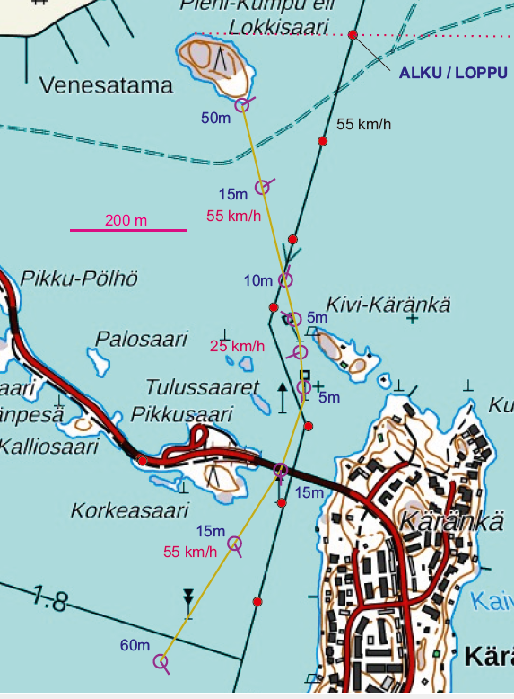 - Työaika: valmistautuminen ja reitin ohjelmointi 2h, reitin testaus 1h, kuvaukset <1h