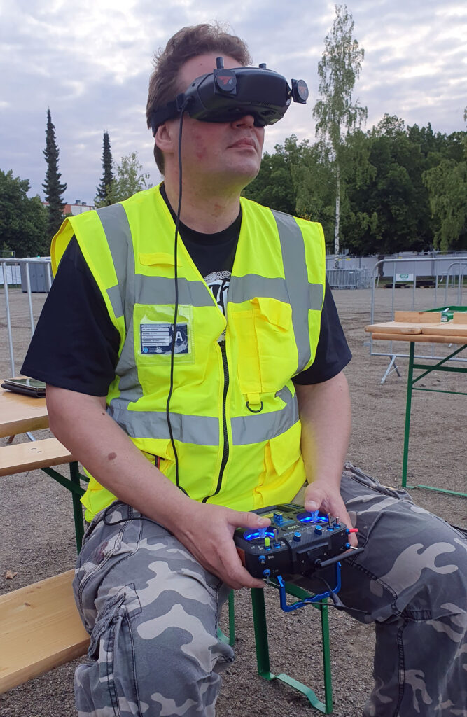 Lennämme FPV-koptereilla. Nimi tulee sanoista ”First Person View” ja tarkoittaa sitä, että pilotti ohjaa kopteria videolasien ja kopterissa olevan kameran avulla.