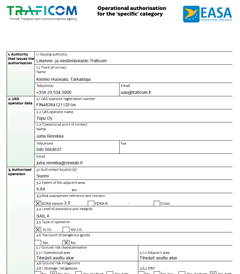 Olemme ylpeitä siitä, että meillä on ensimmäisenä Suomessa erityisen kategorian FPV toimintalupa kaupalliseen kuvaustoimintaan. Lupa kattaa myös tiheästi asutut alueet.